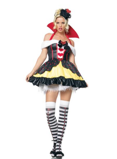 レーストリムの王冠ヘッドピース・襟付きホルターネックドレス・ストライプストッキングの3点セット。(ペチコートは含まれません)